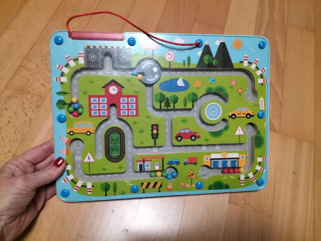 Detalles del productoDivertido juego de laberinto magnético con temática de ciudad y vehículos.