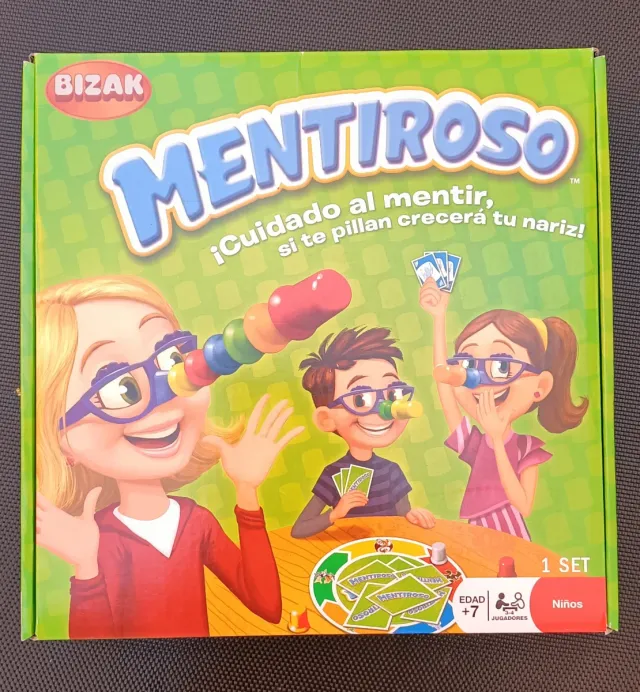 Juego de mesa Mentiroso de Bizak. ¡Cuidado al mentir, si te pillan crecerá tu nariz! - Incluye 1 set de juego. - Edad recomendada: +7 años. - Para niños.