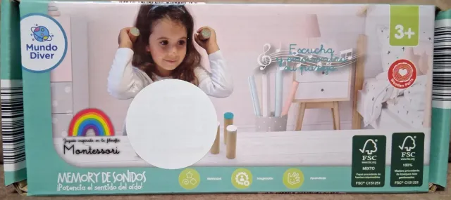 Juego sensorial Memory de Sonidos inspirado en la filosofía Montessori. - Fomenta el sentido del oído. - Incluye piezas de madera. - Apto para mayores de 3 años.