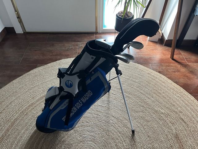 Detalles del productoConjunto de palos de golf para niños unisex, ideal para iniciarse en este deporte. Incluye bolsa de transporte con trípode.