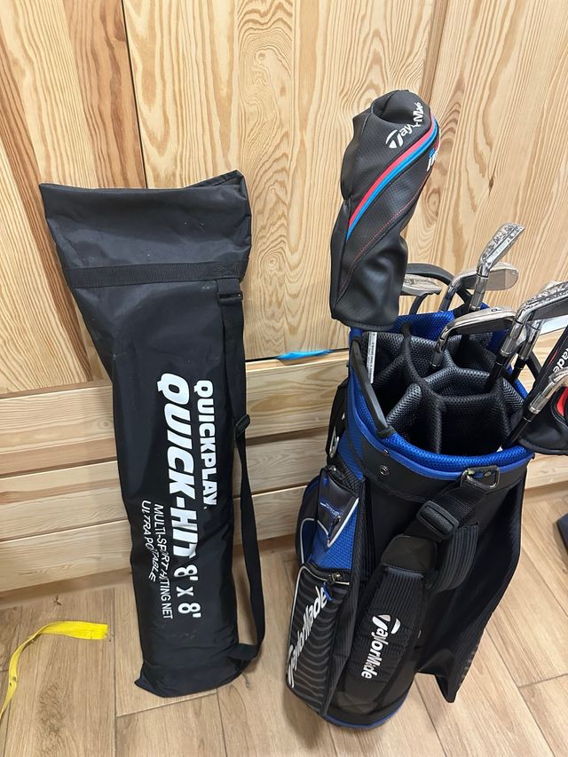Detalles del productoSE VENDEN TAMBIÉN POR SEPARADO Se vende juego de palos de golf TaylorMade junto con una red de entrenamiento Quickplay.