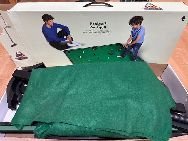 Detalles del productoDivertido juego de poolgolf para niños, ideal para jugar en interiores. Incluye todo lo necesario para empezar a jugar.