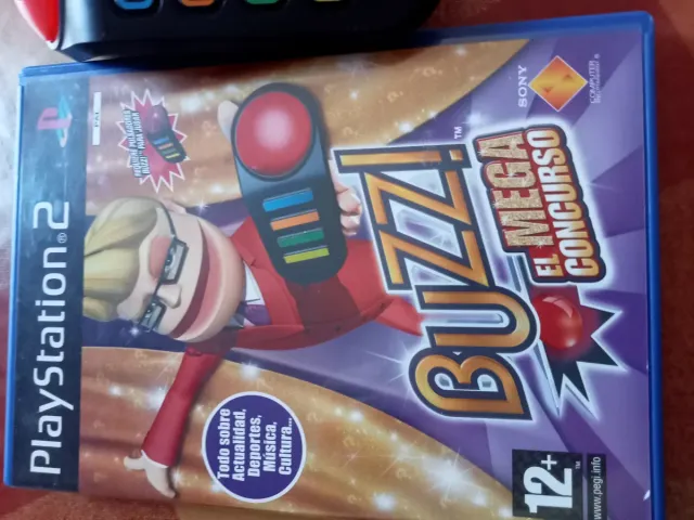 Detalles del productoJuego Buzz! El Mega Concurso para PlayStation 2, ideal para partidas divertidas con amigos y familia. Incluye los cuatro mandos Buzz! necesarios para jugar.