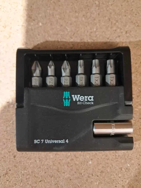 Un Bit-Check robusto de Wera. Los Bit-Check permiten una vista general rápida sobre la herramienta que se tiene. Las puntas que no se necesitan, simplemente se vuelven a guardar en el juego y así no se pierden. El transporte es fácil, por ejemplo, en el bolsillo de la camisa. Incluye un porta-puntas universal con potente imán permanente para la toma de puntas con arrastre de hexágono exterior de 1/4". Para la inserción en la máquina destornilladora o para conectar con el portabrocas del taladro electrónico. El Bit-Check se puede colocar de forma vertical, es multicomponente.