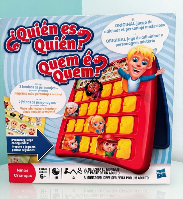 Detalles del productoJuego de mesa clásico ¿Quién es Quién? en su versión bilingüe español/portugués.