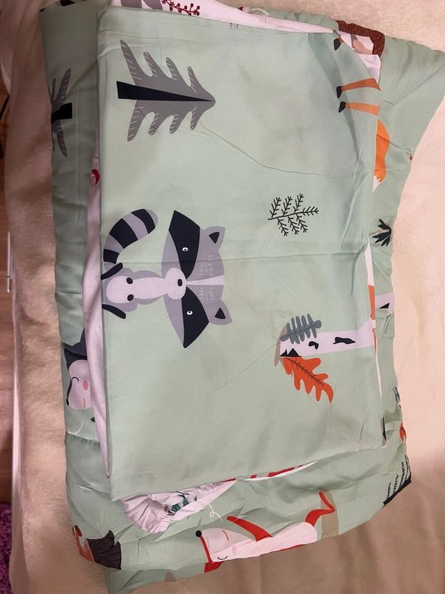 Detalles del productoConjunto de sábanas de 4 piezas para cuna con un adorable diseño de bosque.