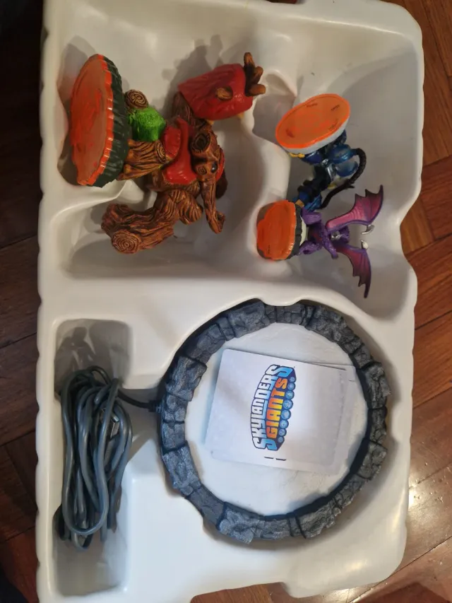 Set de figuras y portal para el juego Skylanders Giants. - Incluye portal con cable. - Figuras de personajes. - Manual de instrucciones.