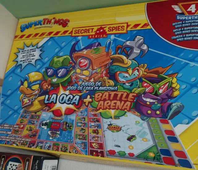 Juego de mesa Superthings Secret Spies Series. - Incluye los juegos de La Oca y Battle Arena. - Para niños a partir de 3 años. - Incluye dados.