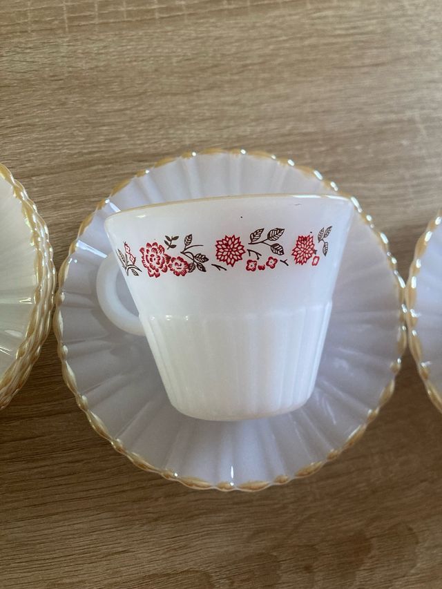 Juego Tazas Vidrio Opalino con Borde Dorado