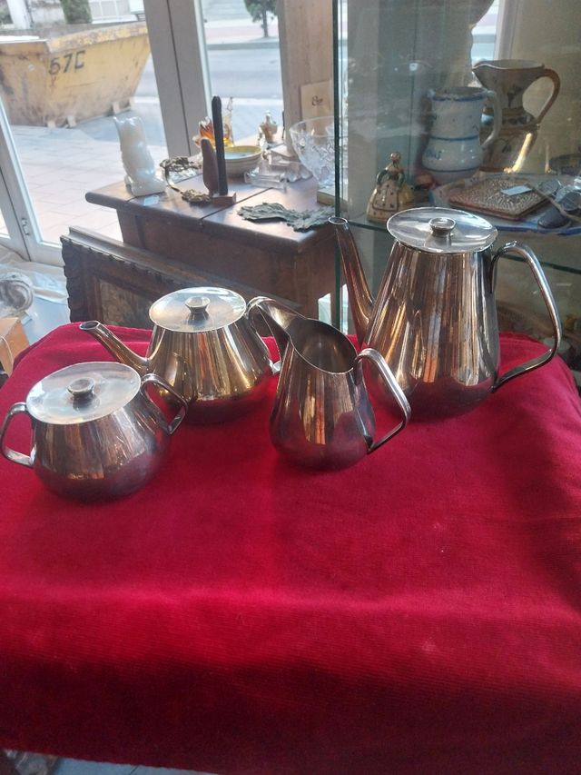 Juego té alpaca baño plata antiguo con su sello.