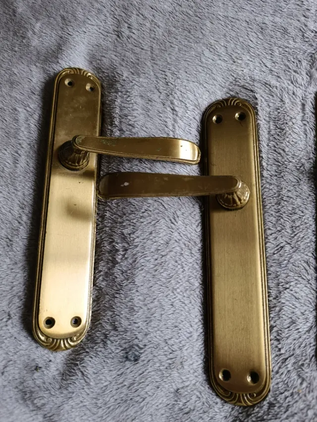 Detalles del productoConjunto de dos tiradores de puerta de latón con un diseño clásico y elegante.