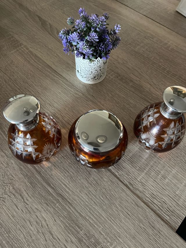 Detalles del productoElegante juego de tocador de cristal tallado. Perfecto para añadir un toque de sofisticación a tu habitación.