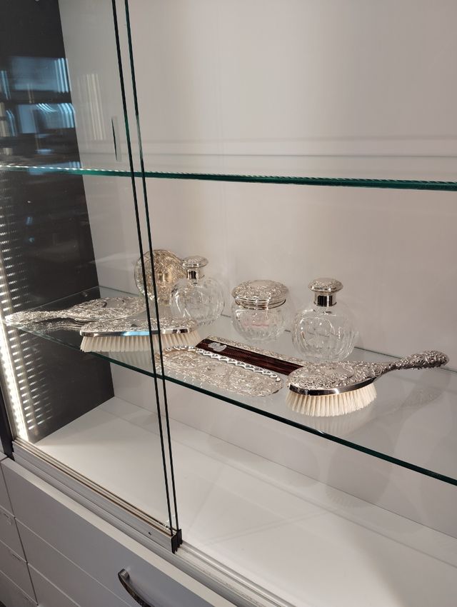 Juego Tocador Plata y Cristal Tallado