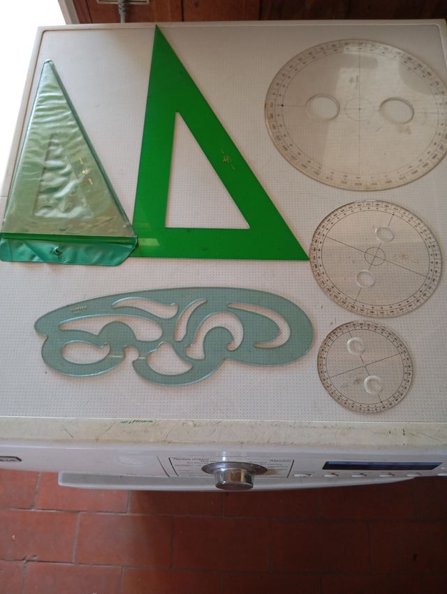 Detalles del productoJuego de transportadores para dibujo técnico. Ideales para estudiantes o profesionales. Diámetro uno de diez quince y veinticinco