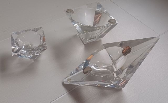 Detalles del productoJuego completo de tres ceniceros de cristal y plata de ley