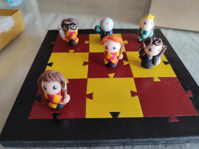 Detalles del productoOriginal juego de mesa Tres en Raya con figuras de Harry Potter. Perfecto para fans de la saga. tic-tac-toe Harry Potter. Hecho artesanalmente en fimo. Único y exclusivo. Está en perfecto estado salvo por la varita de ron que le falta la puntita final.