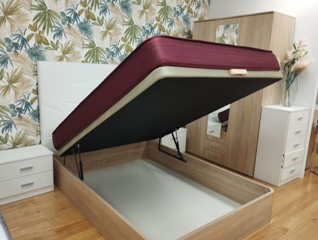 Detalles del productoOferta Canape abatible de 36cm de alto, arcón de 28cm de altura de gran espacio en el interior, fabricado de la melamina de la mejor calidad, con tablas de 2.2 centimetros de grosor, tapa tapizada en Microfibra.