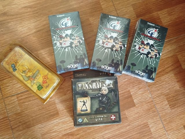 Lote de juegos de cartas Calico Electrónico. - Incluye 3 cajas del juego. - Caja de dados Munchkin. - Caja de miniaturas Tannhäuser.