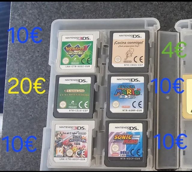 Detalles del productoVendo 6 juegos de Nintendo en perfecto estado. Incluyen: Inazuma Eleven 3: ¡Rayo de Luz!, Cocina Conmigo, El Profesor Layton y el Futuro Perdido, Super Mario 64 DS, Super Smash Bros. y Sonic Rush.