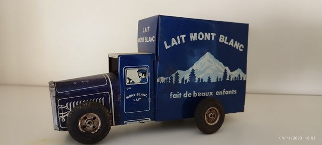 juguete de lata antiguo texto Lait Mont Blanc nostalgic 616 C.R.