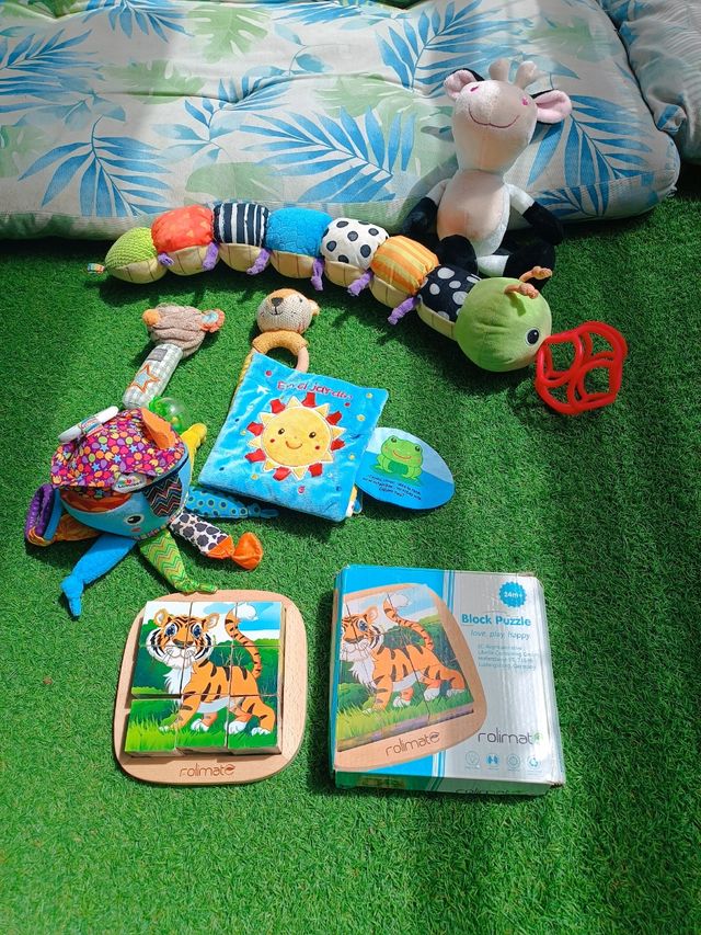 Detalles del productoSe vende lote de juguetes para bebés, ideales para estimular sus sentidos. Son juguetes coloridos y suaves al tacto.