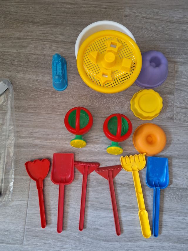 Detalles del productoJuguetes para la playa más una toalla de la patrulla canina y una de McDonald sin estrenar. También regalo bolso de la playa. Cubo, palas, regadera, rastrillos, moldes ...