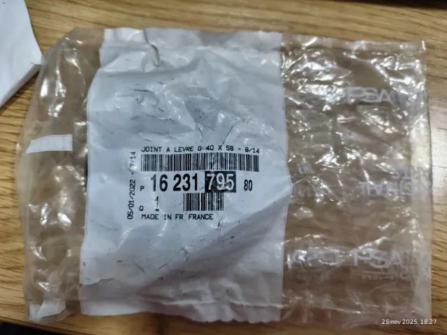 Junta de goma para vehículo. - Referencia: 16 231 795 - Fabricado en Francia - Dimensiones: G 40 X 58