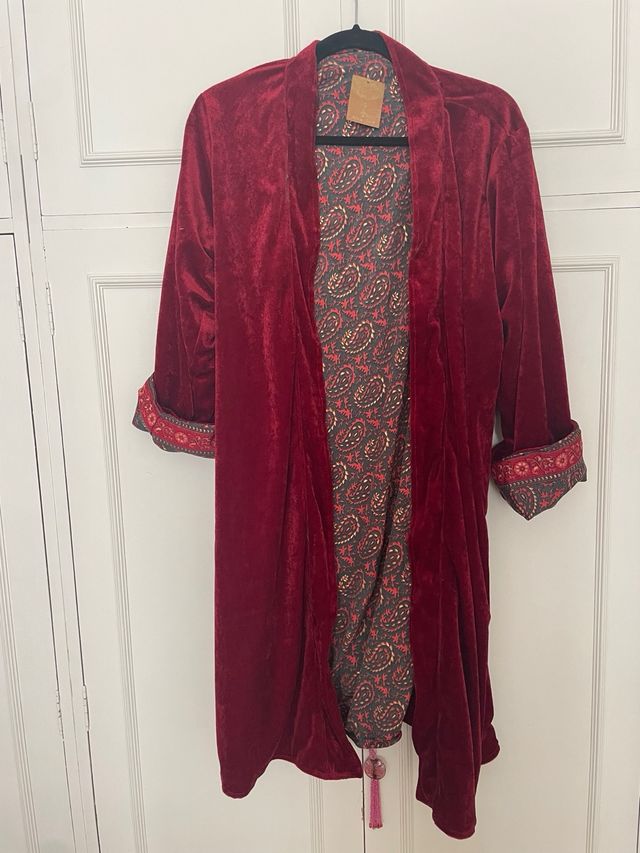 KAFTAN DE TERCIOPELO GRANATE REVERSIBLE