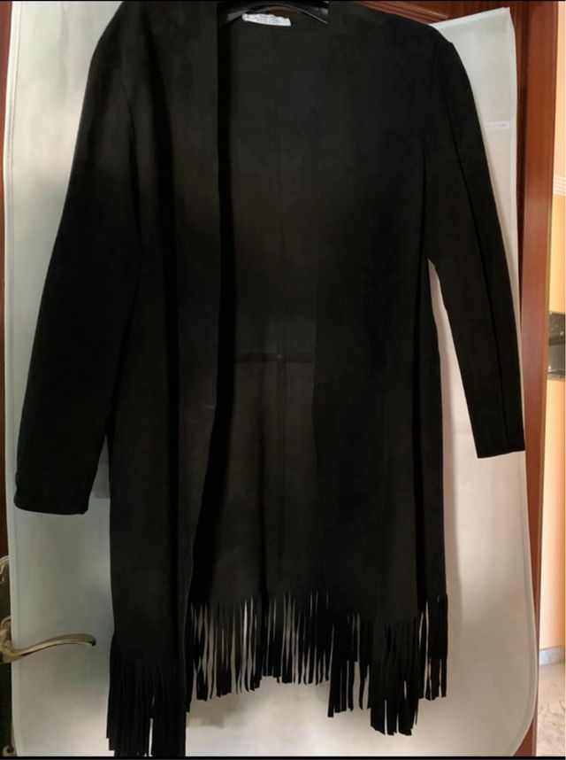 Kaftan flecos de piel negra Mango
