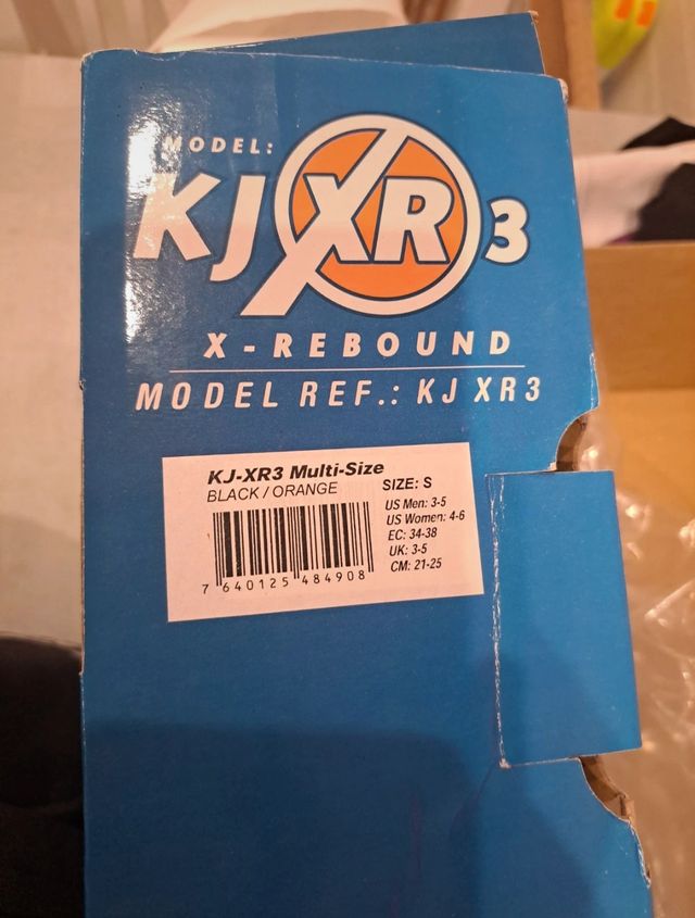 Botas Kangoo Jumps modelo KJXR3 en talla S, color negro y naranja. - Talla S: US Men 3-5, US Women 4-6, EC 34-38, UK 3-5, CM 21-25. - Modelo X-Rebound.