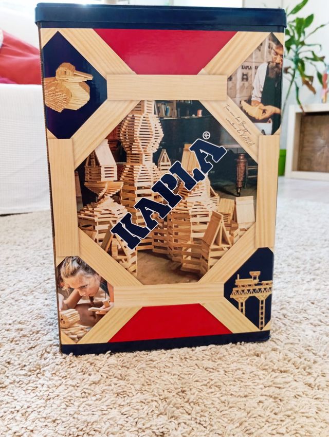 Detalles del productoSet de 200 ladrillos de madera KAPLA para construcción.