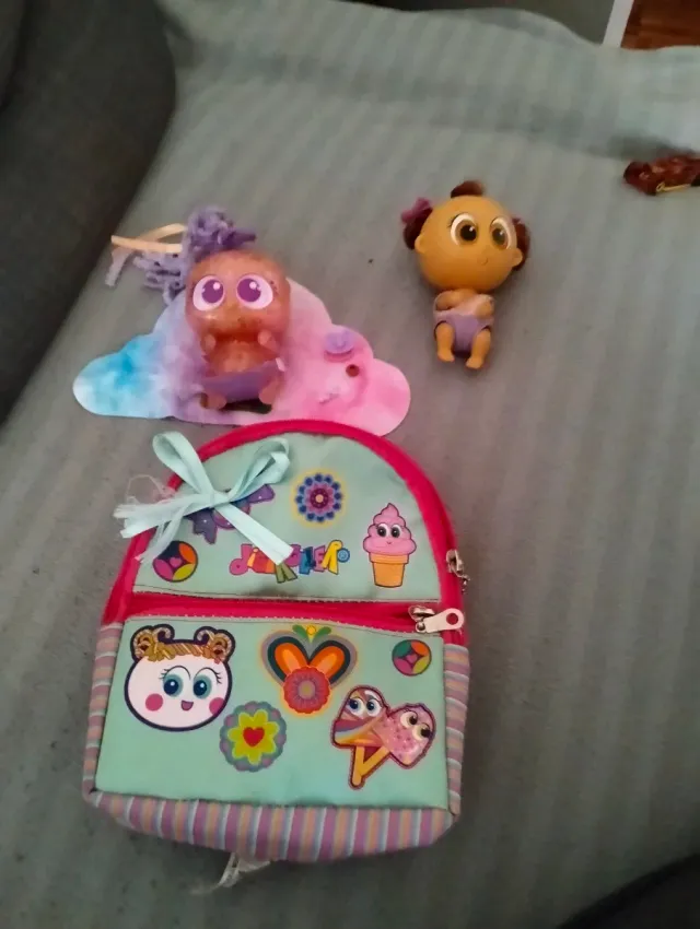 Set de muñecas Kasimeritos con su mochila. - Dos muñecas Kasimeritos. - Mochila con diseño infantil y cierre de cremallera. - Incluye accesorios decorativos.
