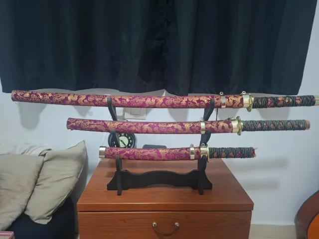 Detalles del productoSet de katanas decorativas con un diseño elegante.
