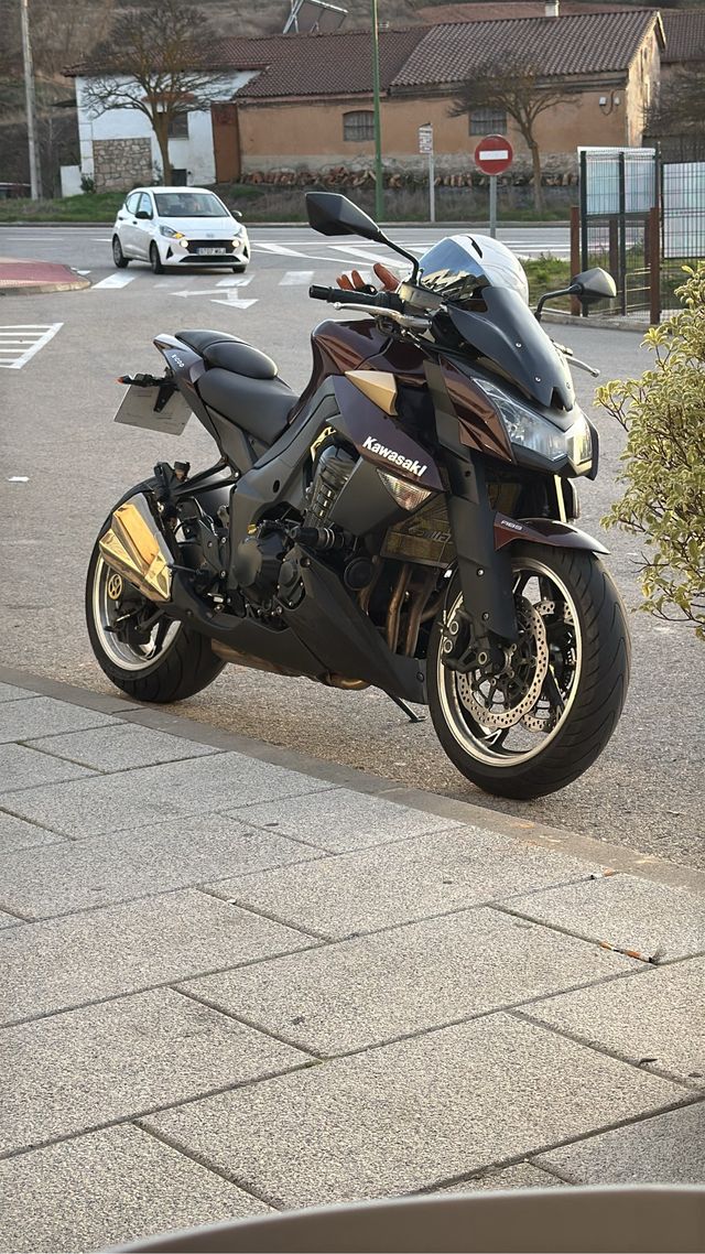 Moto Kawasaki z1000 en tonos burdeos y dorado. Transmisión manual. - Diseño deportivo y agresivo. - Escape dorado llamativo. - 65000km año 2010