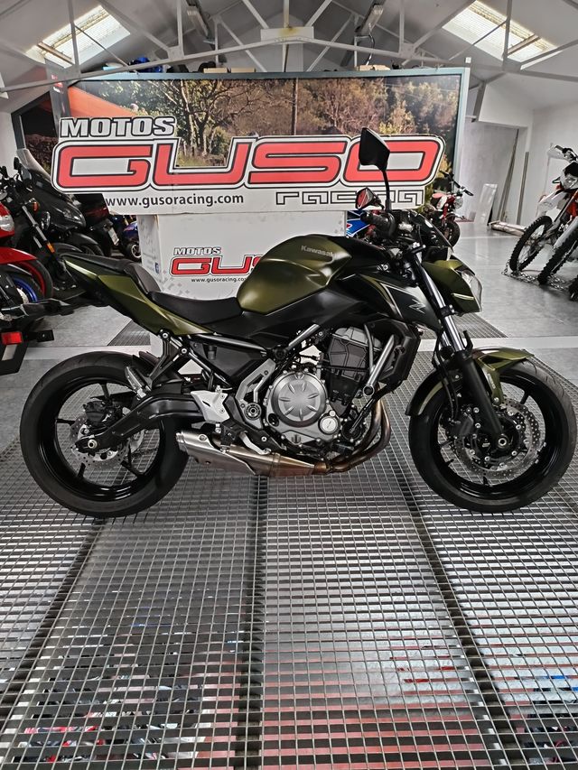 Detalles del productoMoto Kawasaki Z650 en color verde militar.