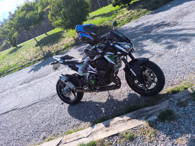 Moto Kawasaki Z800. Sevende KawazKi Z800 - Diseño deportivo y agresivo. - Color negro y verde con detalles gráficos. - Asiento de dos plazas.