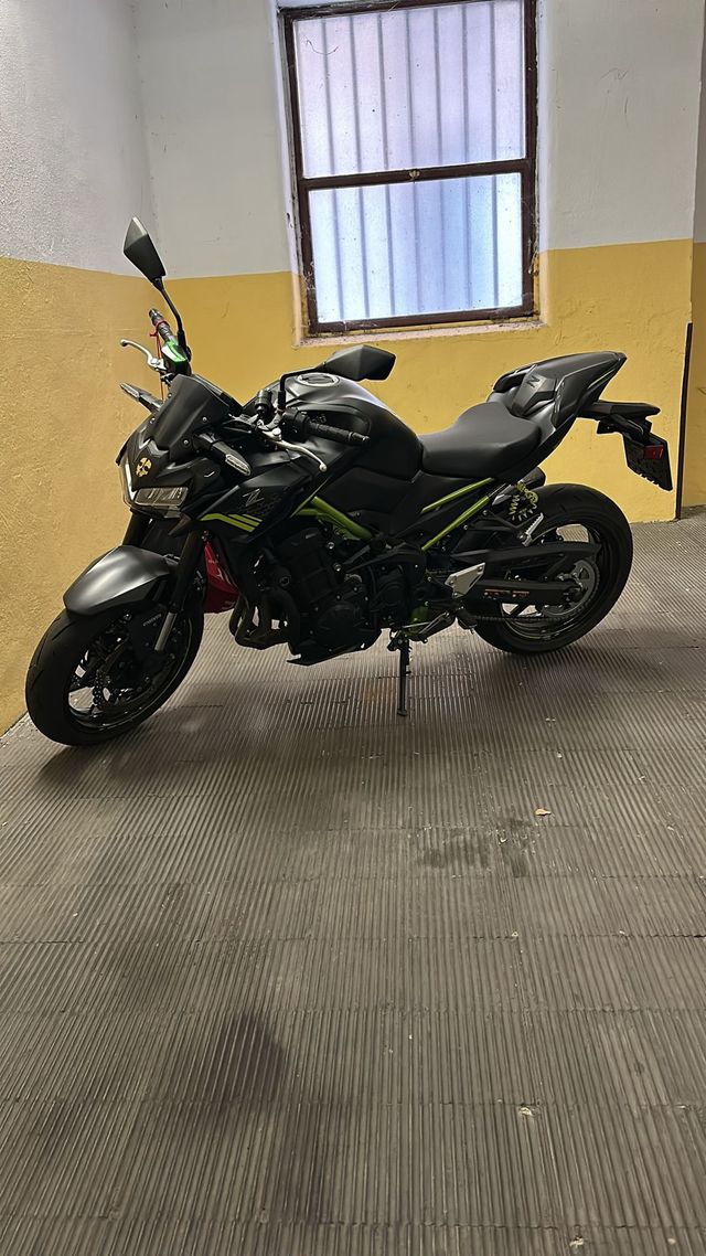 Detalles del productoMoto Kawasaki Z900 en color negro y verde, apta para carnet A2.
