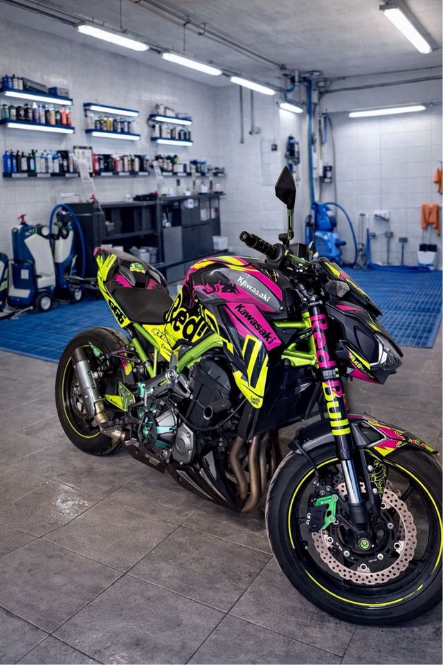 Detalles del productoMoto Kawasaki Z900 con un diseño único y llamativo.