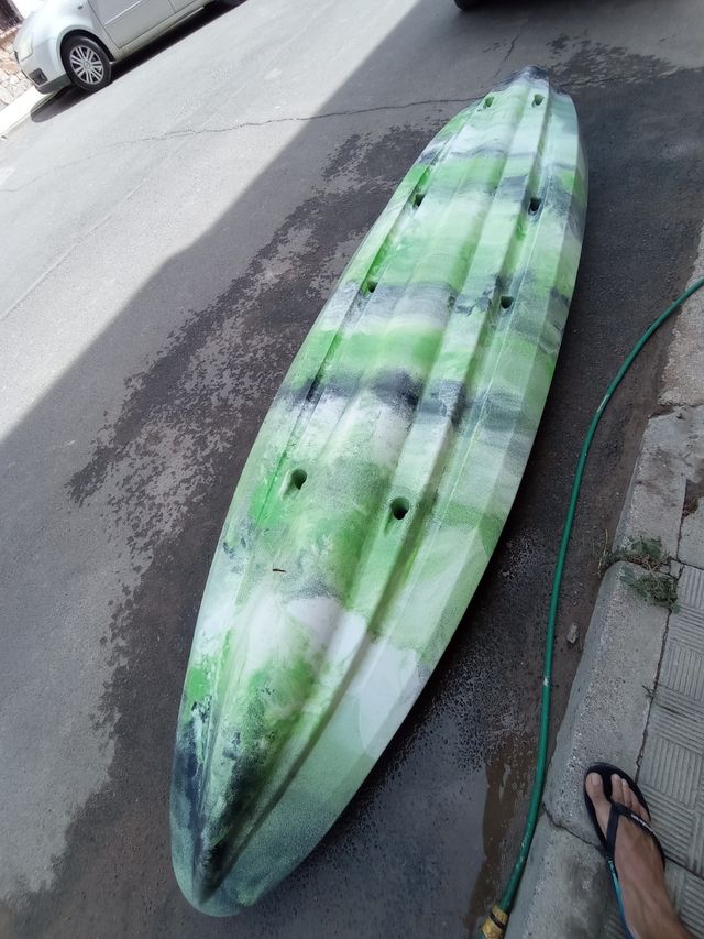Detalles del productocanoa 2+1 autovaciable, 373cm muy estable y muy muy bien estado, equipado con: con tapones para seco, 2 tambuchos +2 sin agujerear, 4 cañeros+1 giratorio 2 sillas, 2 remos despontables 2 antiolvidos para remos, red trasera, 2 chalecos, tapón vaciado interior y opción motor 4t 1'5cv con acople+130€. posibilidad de llevar a Lleida Huesca o zgz previo +80€ bizum. barco sin matricular, solo ha tocado mar. Cambio por moto de trial o kayak de mar gran travesia. Se escuchan ofertas.