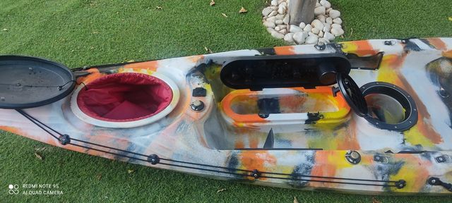 Kayak de pesca galaxy alboran con muy poco uso,con cañero y silla,remo,chaleco y ruedas de transporte