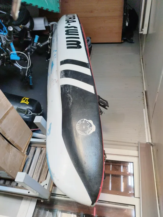 Detalles del productoKayak ULTRA-SWIM. Preparado para la pesca, pero sirve igualmente para hacer deporte o como ocio.Diseño con franjas negras y blancas. Muy ligero y fácil de manejar