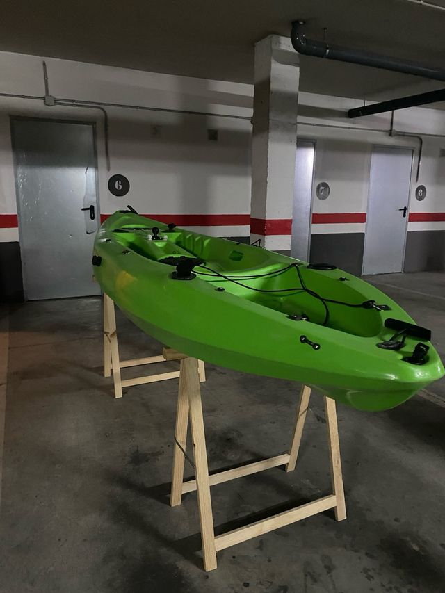 Kayak de pesca, es pequeño mide 3,30, tiene un asiento desmontable, sin fisuras ni reparaciones, listo para echarlo al agua