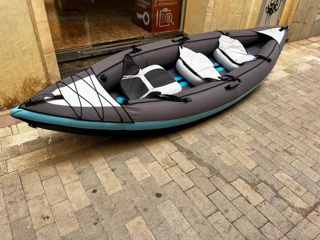 Detalles del productoKayak inflable de tres plazas, ideal para disfrutar de aventuras acuáticas.