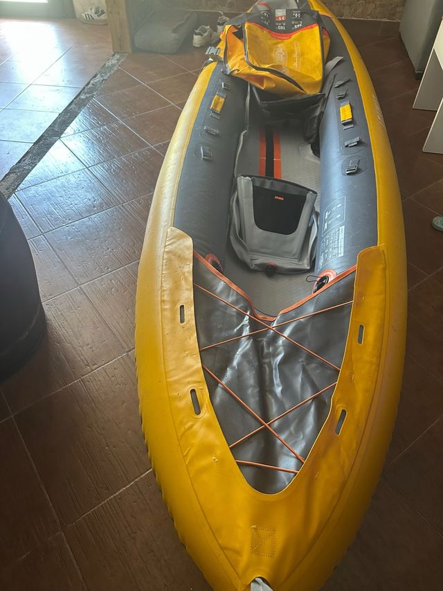 Detalles del productoKayak inflable de color amarillo, en buen estado. Ideal para actividades acuáticas.