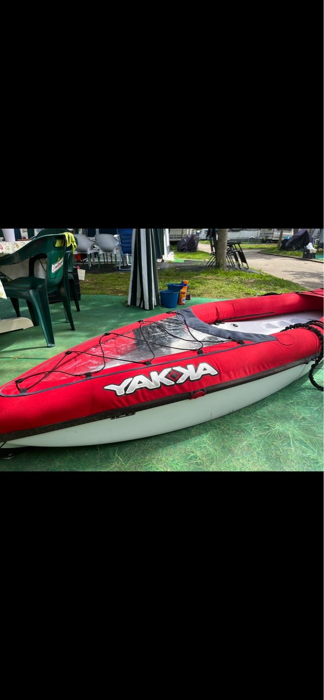 Detalles del productoKayak inflable para una persona, de la marca Yakka. Es plegable para facilitar su transporte y almacenamiento. Se encuentra en buen estado.