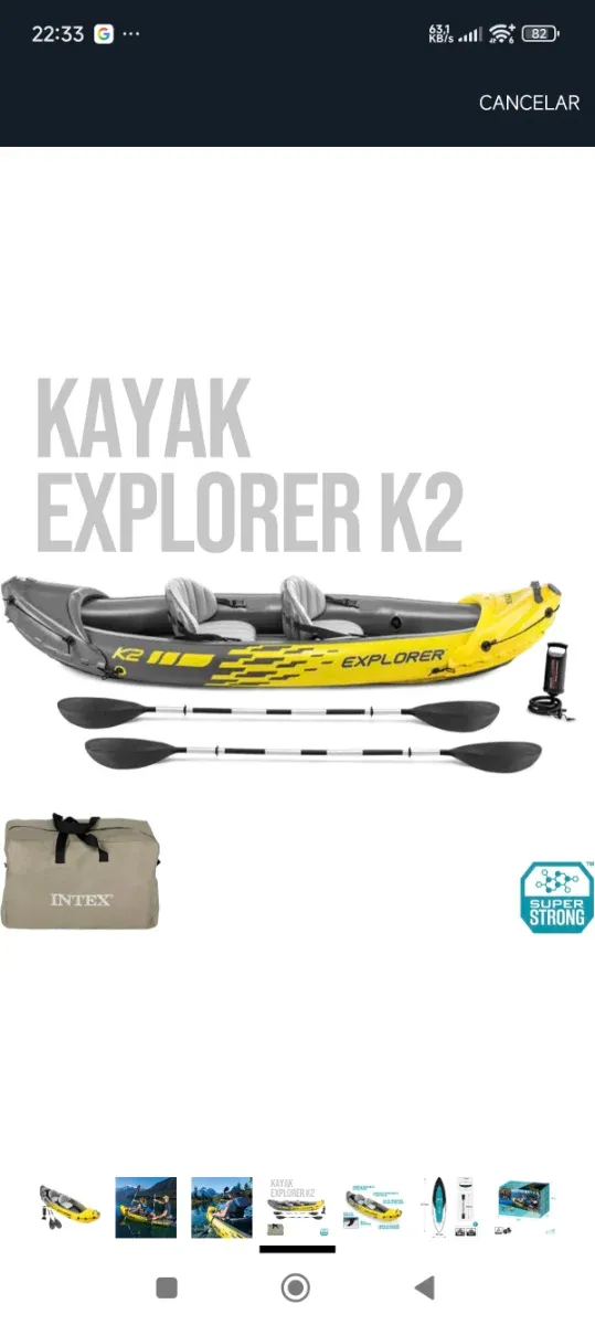 Detalles del productoKayak inflable Intex Explorer K2 para dos personas. Incluye remos y bolsa de transporte.