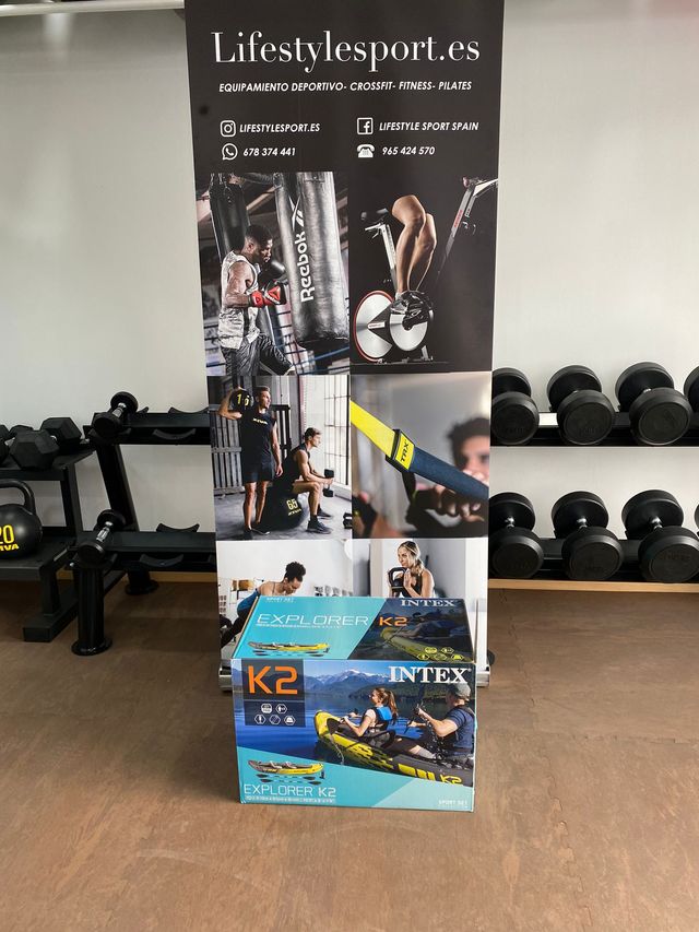 Incluye: 2 remos dobles de aluminio de 218 cm, hinchador manual, quilla de dirección extraíble y bolsa con instrucciones, parches de reparación y manómetro de presión