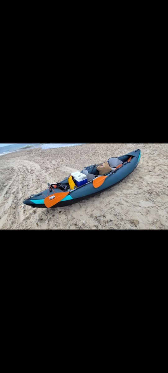 Detalles del productoKayak hinchable Itiwit para tres personas. Un solo uso este verano, se vende por no habernos gustado la experiencia. Está nuevo