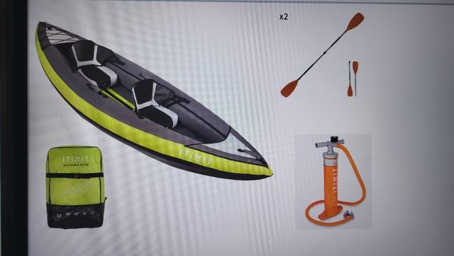 Detalles del productoKayak inflable ITWIT para dos personas, casi nuevo. Incluye dos remos y un inflador. El kayak está en excelentes condiciones y listo para usar.