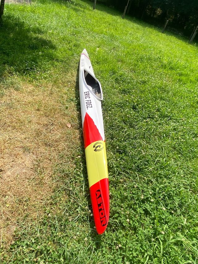 Se vende min K1 astor ideal para dar el paso a k1 - Modelo: mini racing astor - Tipo: Kayak de carreras - Color: Blanco, rojo y amarillo - Asiento incluido